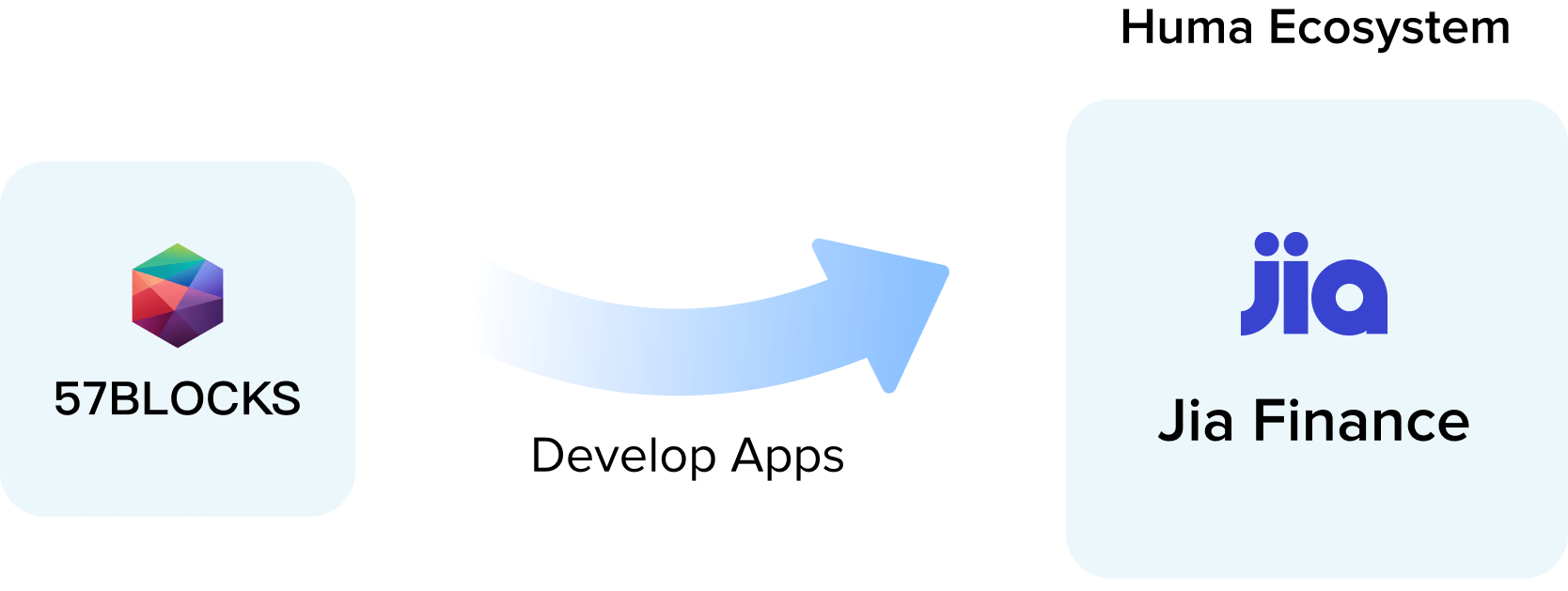 57Blocks has been active, developing partner applications within the Huma ecosystem, such as Jia Finance, which leveraged Huma’s credit facilities to build innovative financial solutions for SMBs in Africa. Helping develop both Huma and Jia benefits both parties as increased lending volume on Jia increases the utilization of credit pools on Huma.